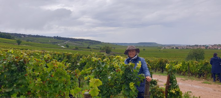 Foto (divulgação): A jornalista Chris Ranunkel no célebre vinhedo de Beaune, na véspera da vindima