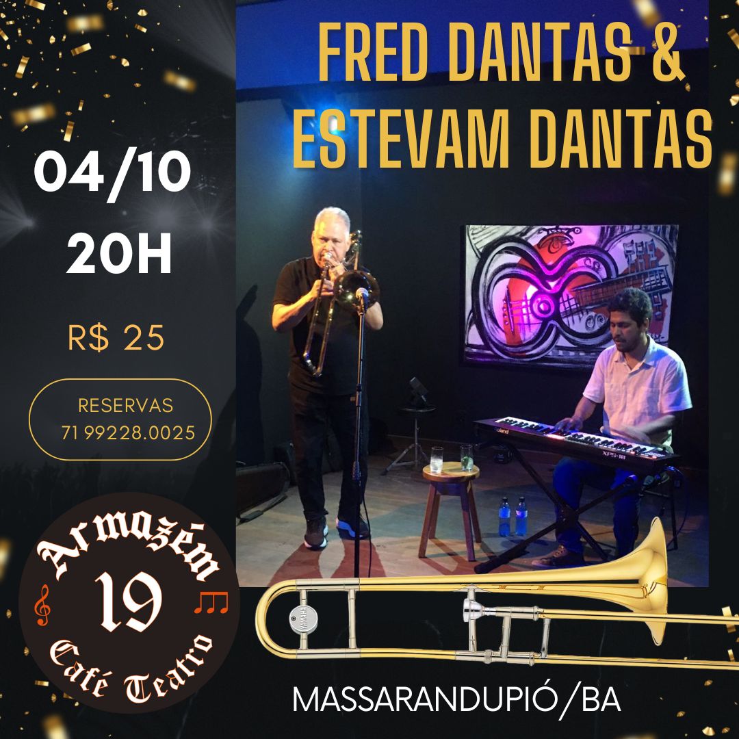 No dia 04/10 o Armazém 19 apresenta o maestro Fred Dantas, um dos maiores nomes da música na Bahia, instrumentista, compositor, arranjador e grande incentivador das orquestras filarmônicas, mais uma vez no trombone em dueto com o virtuoso pianista Estevam Dantas – professor, parceiro de inúmeros artistas e referência na cena musical baiana.