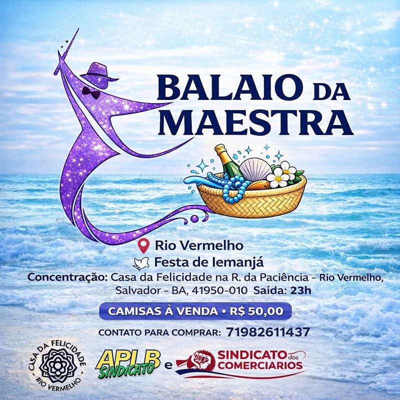 A ação conta com patrocínio da APLB e do Sindicato dos Comerciários da Bahia, reforçando o apoio institucional à cultura popular e às manifestações tradicionais da cidade.