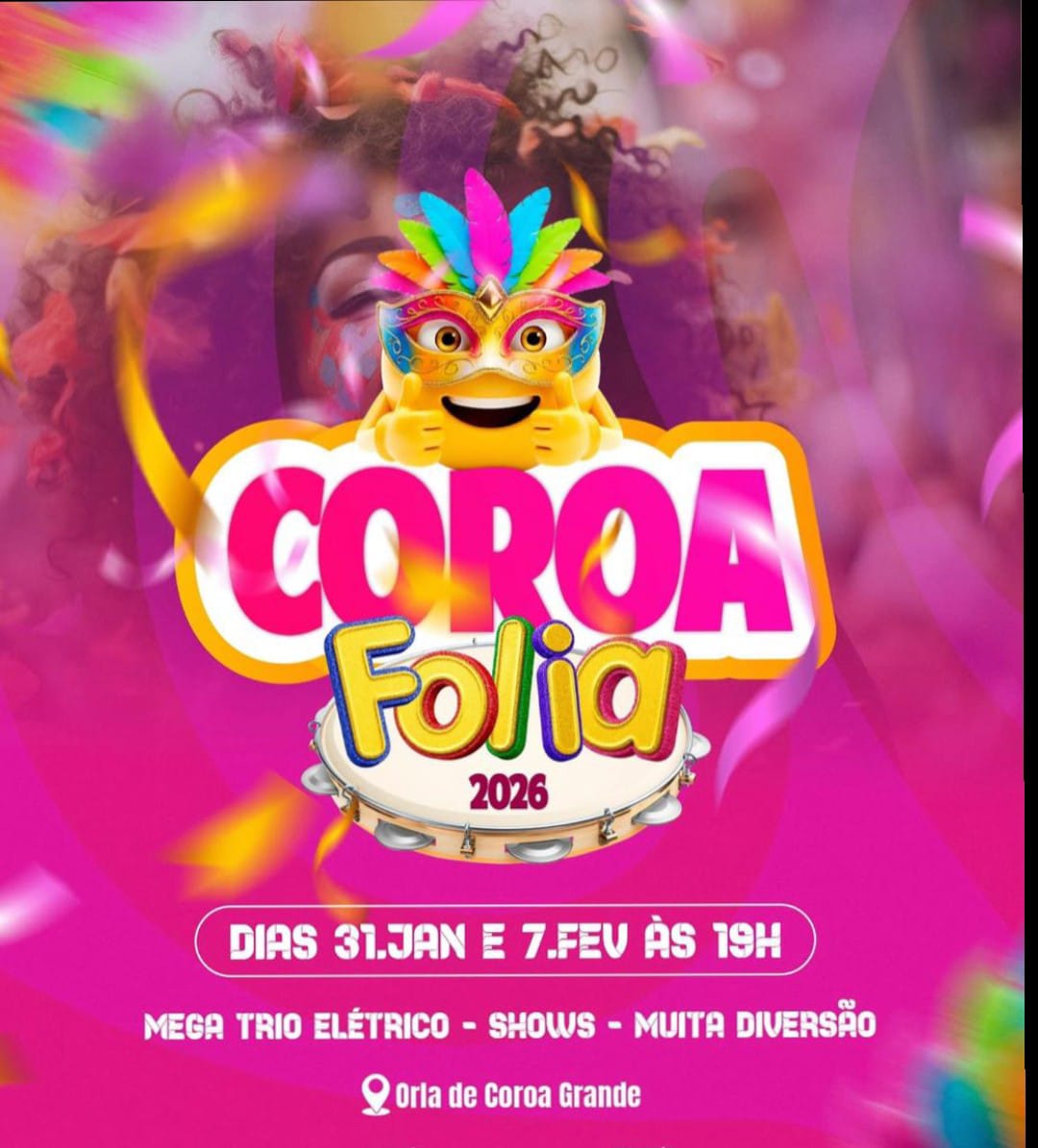 Com uma mistura perfeita de música boa, brisa do mar e a hospitalidade característica de Itaguaí, o Coroa Folia 2026 se posiciona como um evento imperdível no calendário de verão do Rio de Janeiro. Se você busca diversão de qualidade e quer sentir o clima do Carnaval mais cedo, o destino é Coroa Grande. Prepare sua fantasia, hidrate-se e venha fazer parte dessa festa inesquecível . Por podcast edinhotaon/ Edno Mariano