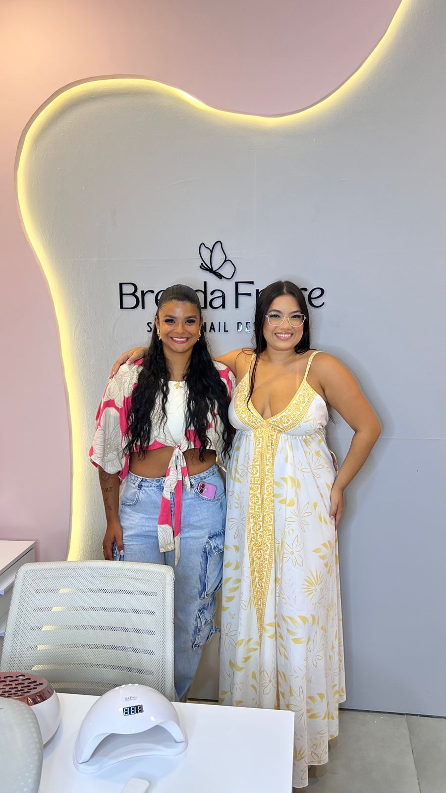 Eu conheci o trabalho da Brenda Freire, que é nail designer, através do studio dela. Entrei em contato e ela abriu as portas pra mim. Foi uma oportunidade muito importante nesse momento, porque me permitiu voltar a trabalhar e reconstruir minha clientela.