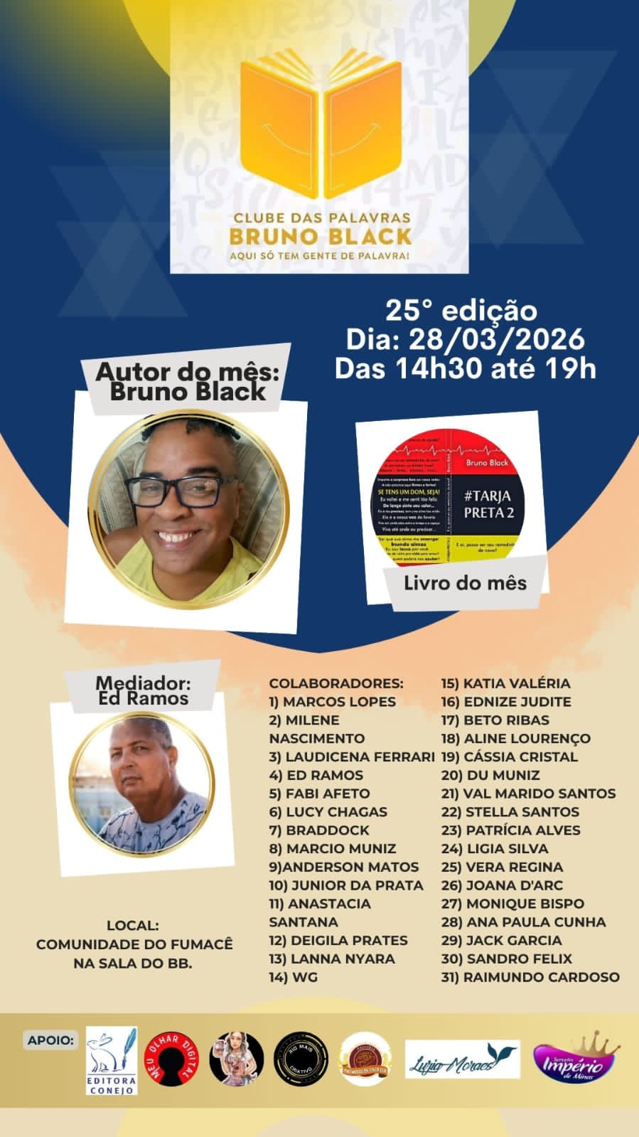 Hoje – Clube das Palavras do Bruno Black – 25° Edição – Comunidade do Fumacê – RJ