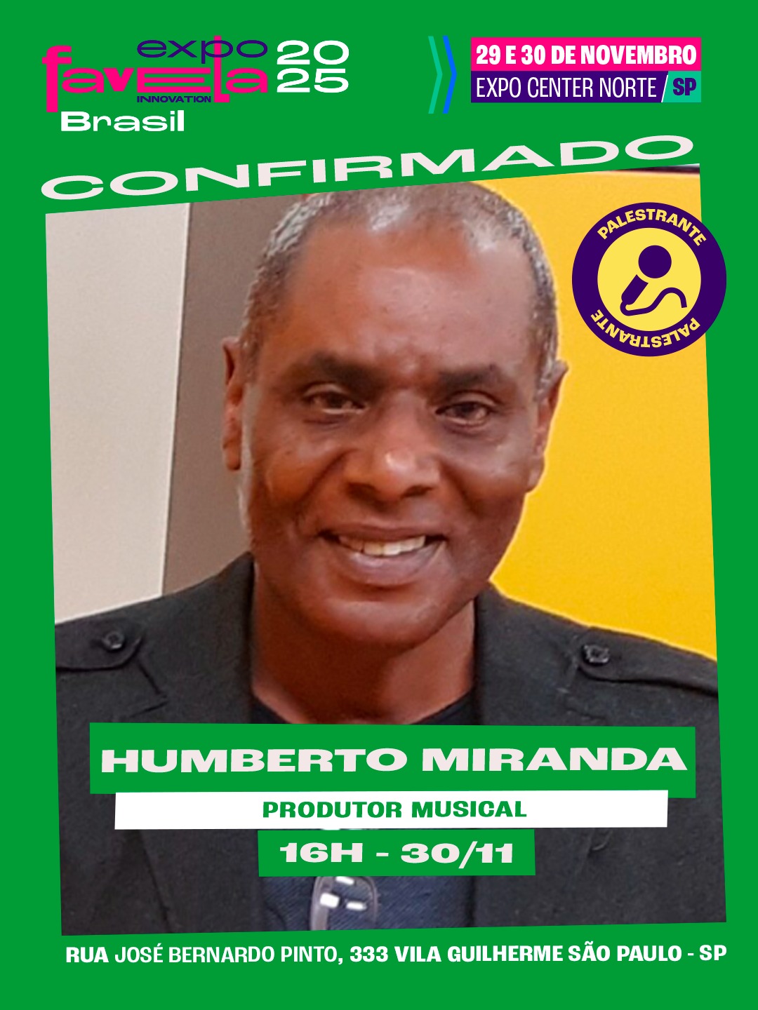 Humberto traz décadas de experiência para inspirar, ensinar e transformar caminhos na Expo Favela Nacional e irá palestrar no dia 30 de novembro, às 16h, na Vila Guilherme -SP. Imperdível!