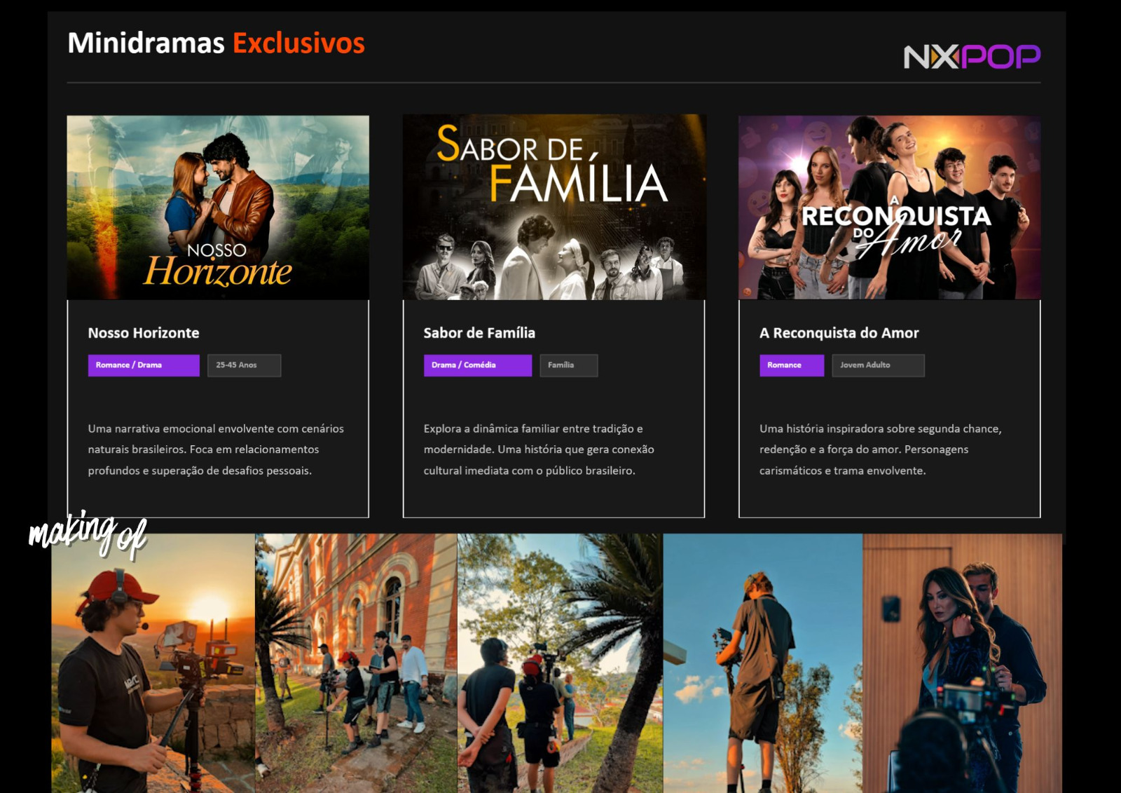 As obras são gravadas para exibição tanto no formato vertical quanto horizontal, buscando se adaptar a diferentes formas de consumo.
