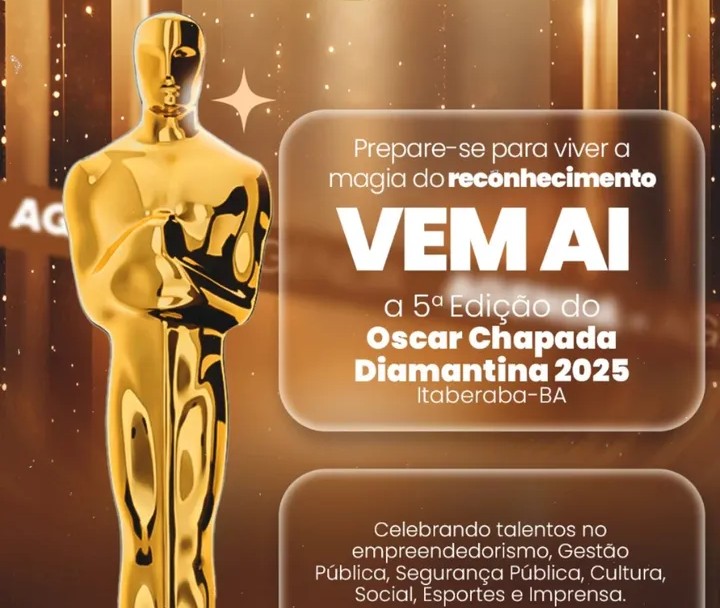 A cidade de Itaberaba, portal da Chapada Diamantina, será palco de uma das noites mais aguardadas do ano: o Oscar Chapada Diamantina 2025, que acontece no dia 28 de novembro, reunindo nomes de destaque nas mais diversas áreas da cultura, comunicação, empreendedorismo, arte e entretenimento da Bahia.