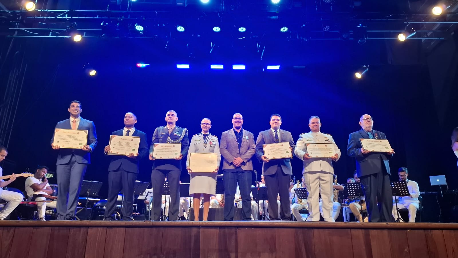 Entre os condecorados da noite estiveram o cônsul do Panamá, Sr Ruben Arguelles Sanchez, o cônsul Honorário da Finlândia, Sr Sérgio Rocha Chamone, membros do alto comando da Marinha do Brasil, Marinha Mercante, da Escola Superior de Guerra, do Exército, além de oficiais da Polícia Militar, da Polícia Civil e Secretários de algumas cidades. O maestro Paulo Guarany também foi homenageado por sua contribuição à cultura do município. O vereador professor Felipe Guarany, destacou a importância do reconhecimento público. A comandante CLC Andréa de Fátima Bacala, que recebeu quatro medalhas e o título de cidadão benemérito de São Gonçalo, celebrou a homenagem: “É uma alegria. Isso reflete 29 anos trabalhando na Marinha Mercante, vivendo com muito amor e justiça o dia a dia no mar. E, uma novidade, acabou de nascer o Instituto Cultural Marinha Mercante, um divisor de águas para contar nossa história”.
