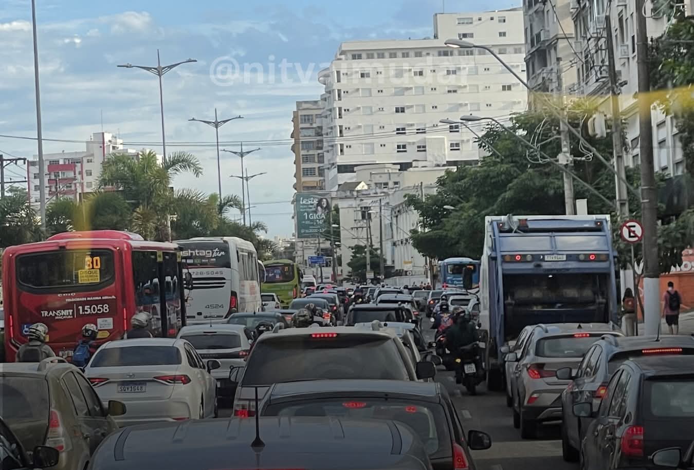 A situação também é complicada para quem segue pela Avenida Jansen de Melo, que faz a ligação com a Ponte Rio–Niterói. O fluxo elevado de veículos provoca retenções e aumenta significativamente o tempo de deslocamento.